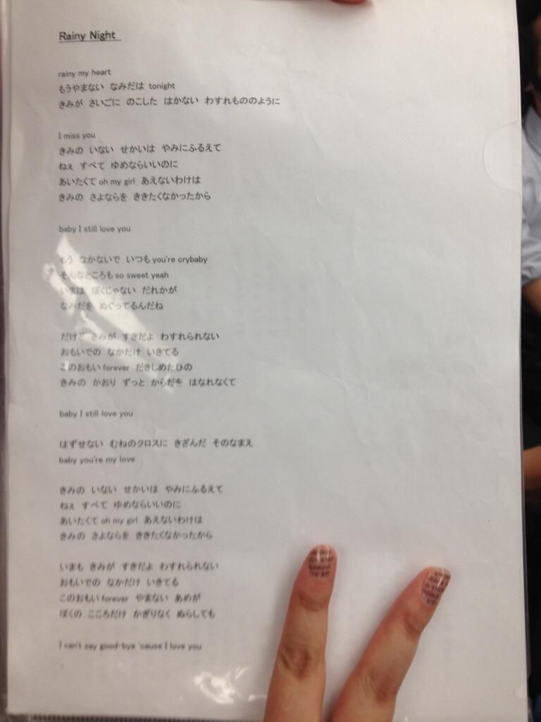 Quand Junsu a chanté Rainy Night au Genie Time, un fan n'avait pas les paroles mais un autre fan les avait !! Alors il a pu chanter cette chanson~