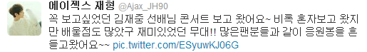 Note: Jaehyun est un membre du groupe AJAX, un boys band sud coréen de l'agence DSP Media, C'est un vocaliste et le visuel du groupe. Il était présent au concert de Jaejoong à Seoul qui avait lieu le 25 janvier 2014.